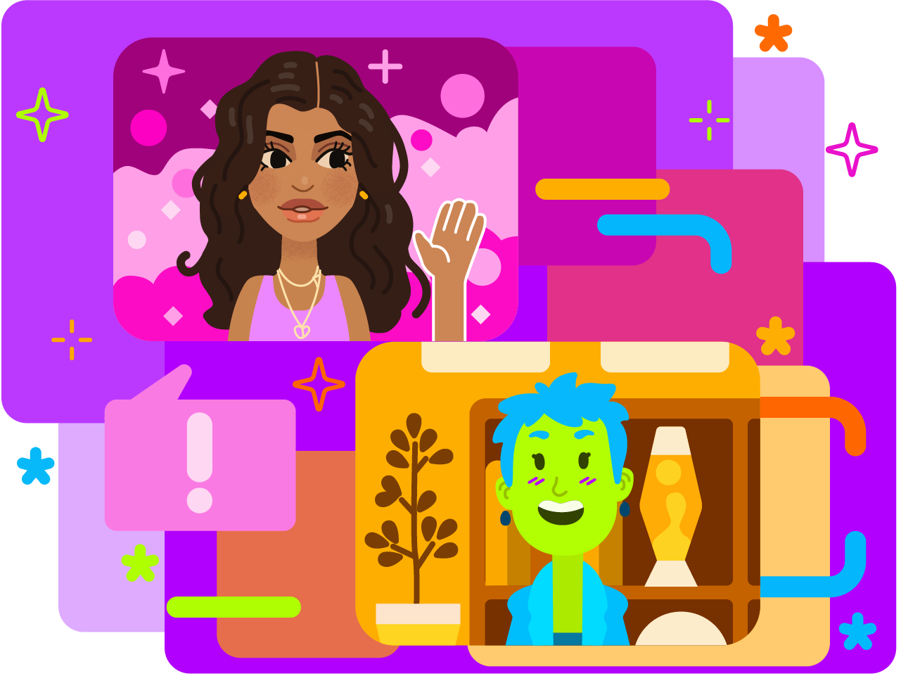 Choose your background and decorate your room with images, pet photos, and more to reflect your unique personality.